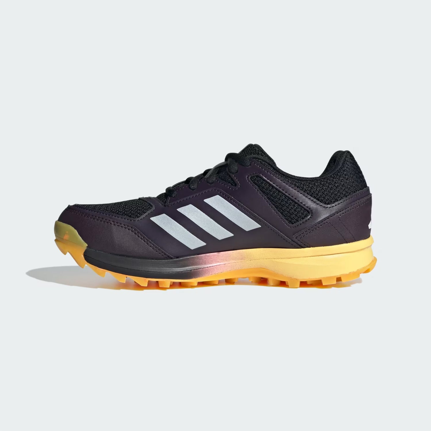 Adidas Fabela Rise Women’s Hockey Shoes in black are designed for female hockey players looking for breathable comfort and reliable performance on the field. Featuring an air mesh upper for ventilation, these shoes ensure your feet stay cool during intense matches. The synthetic overlays add protection and support, while the lightweight EVA midsole provides long-lasting cushioning. The TRAXION™ outsole delivers maximum grip, allowing for quick and controlled movements in all directions.